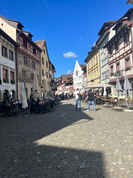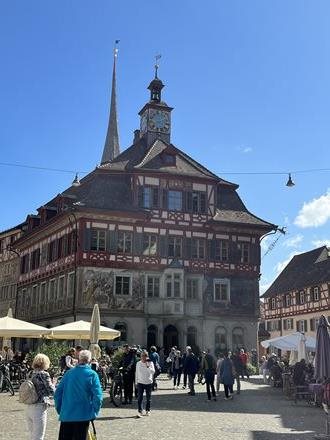 Mit bestem Herbstwetter starteten wir in den Sonntag. Nach einem reichhaltigen Frühstück und auschecken im Hotel, wechselten wir heute von der Strasse aufs Wasser. Nach einer kurzen Fahrt nach Kreuzlingen bestiegen wir das Kursschiff. Durch Rhein und Untersee schipperten wir gemütlich bis nach Stein am Rhein. Ab hier war die Zeit für alle frei verfügbar. Es wurde durch das schöne, alte Städtchen flaniert und auch in den zahlreichen Restaurants traf man immer wieder Baukaderleute an. Um 16:00 Uhr stand auch unser Chauffeur Walo mit dem Car bereit, so dass wir die Heimreise antreten konnten.