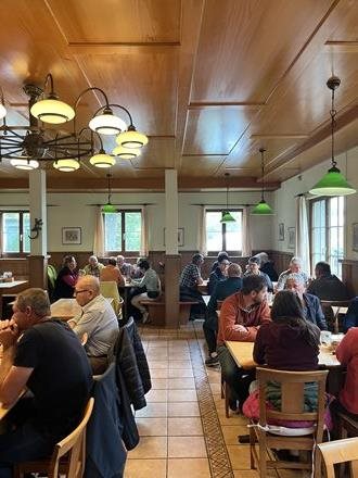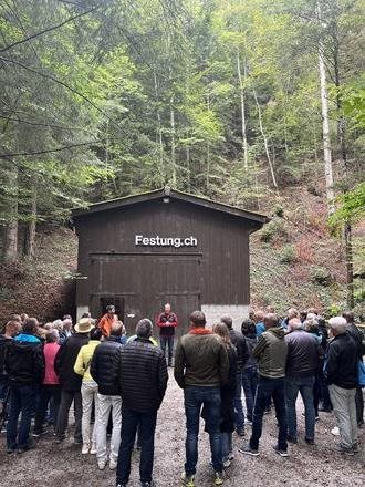 Die Reise startete am Samstagmorgen in Grünen bei der Firma Sommer AG. Bei doch sehr bescheidenem Wetter, aber mit besseren Aussichten bestiegen 45 Personen den Car. Via Dagmarsellen-Baden gelangten wir bereits zu unserem ersten Stopp. Kaffeepause mit Gipfeli im Restaurant Waldhaus Katzensee in Zürich war angesagt. Gestärkt ging unsere Reise weiter Richtung Appenzellerland. Über enge Kurven erreichten wir den Kommandobunker der Grenzbrigade 8 in Schlatt-Haslen. Nach einer kurzen Information konnten wir uns bei einem reichhaltigen Apéro für die anschliessende Führung stärken. Nach einer sehr ausführlichen, fast zweistündigen Führung ging unsere Reise weiter Richtung St. Margrethen. Da unterwegs noch Viehschau war und die Appenzeller Kühe die ganze Strassenbreite brauchen, wurden wir unfreiwillig ausgebremst.